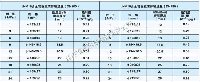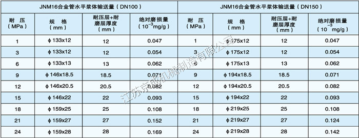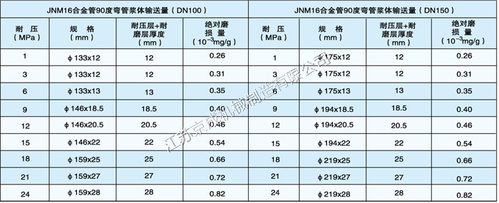 注:除表中所列規格尺寸外,高壓耐磨管件壁厚可根據磨損率和實際漿體輸送量增減。