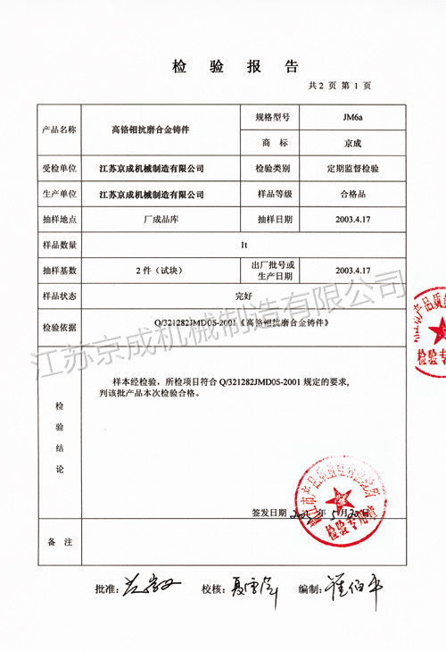 您好,歡迎訪問江蘇京成機械制造有限公司官網!公司主營產品:鍋爐配件|耐磨耐熱鑄鋼|金屬陶瓷復合磨輥